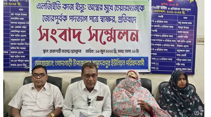 বৃহস্পতিবার (১৯ জুন) বেলা ১১টায় রাজশাহী বরেন্দ্র প্রেসক্লাবে এ অভিযোগ তুলে সংবাদ সম্মেলন করেছেন ভূক্তভোগী চেয়ারম্যান নজরুল ইসলাম ও ঐ ইউনিয়ন পরিষদের ৮ জন সদস্য।