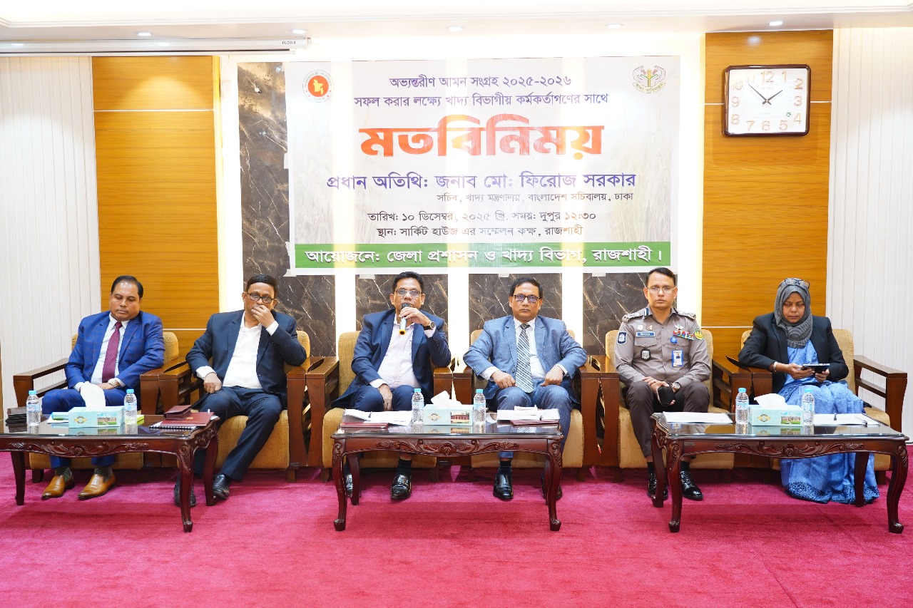 বুধবার (১০ ডিসেম্বর)সকালে তিনি নওহাটা এলএসডি পরিদর্শন করে ধান–চাল মজুত, সংরক্ষণ ব্যবস্থা ও সংগ্রহ কার্যক্রমের অগ্রগতি পর্যবেক্ষণ করেন। পরে সার্কিট হাউসে রাজশাহী ও রংপুর বিভাগের জেলা ও উপজেলা খাদ্য নিয়ন্ত্রকসহ মাঠপর্যায়ের কর্মকর্তাদের সঙ্গে মতবিনিময় সভায় যোগ দেন।