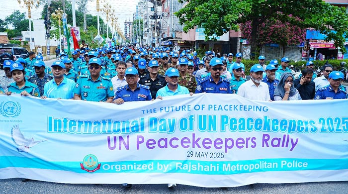 রাজশাহী মেট্রোপলিটন পুলিশের সদর দপ্তর প্রাঙ্গণে সকাল ৯:৩০ টায় বেলুন-ফেস্টুন উড্ডয়ন ও কবুতর অবমুক্তকরণের মাধ্যমে এ অনুষ্ঠানটি শুরু হয়। অনুষ্ঠানে বিভিন্ন পেশা, সংগঠন ও শিক্ষা প্রতিষ্ঠানের প্রতিনিধিদল অংশগ্রহণ করে। এখান থেকে একটি বর্ণাঢ্য র্যালি বের হয়। পরবর্তীতে রাজশাহী জেলা পরিষদ অডিটরিয়ামে আলোচনা সভা শুরু। আলোচনার শুরুতেই শান্তির প্রতীক হিসেবে আন্তর্জাতিক শান্তিরক্ষী দিবস উপলক্ষ্যে একটি প্রামাণ্যচিত্র (ডকুমেন্টারি) প্রদর্শিত হয়, যেখানে জাতিসংঘ শান্তিরক্ষায় বাংলাদেশের অবদান ও কর্মপ্রক্রিয়া তুলে ধরা হয়।