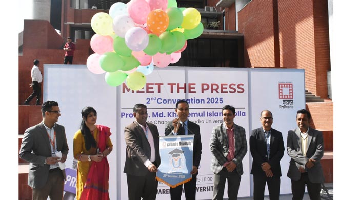 দ্বিতীয় সমাবর্তন আয়োজন বিষয়ে বিস্তারিত তথ্য গণমাধ্যমের সামনে তুলে ধরতে সোমবার (১৫ ডিসেম্বর) সকাল ১১টায় বিশ্ববিদ্যালয়ের প্লাজা চত্বরে এক সংবাদ সম্মেলন অনুষ্ঠিত হয়।