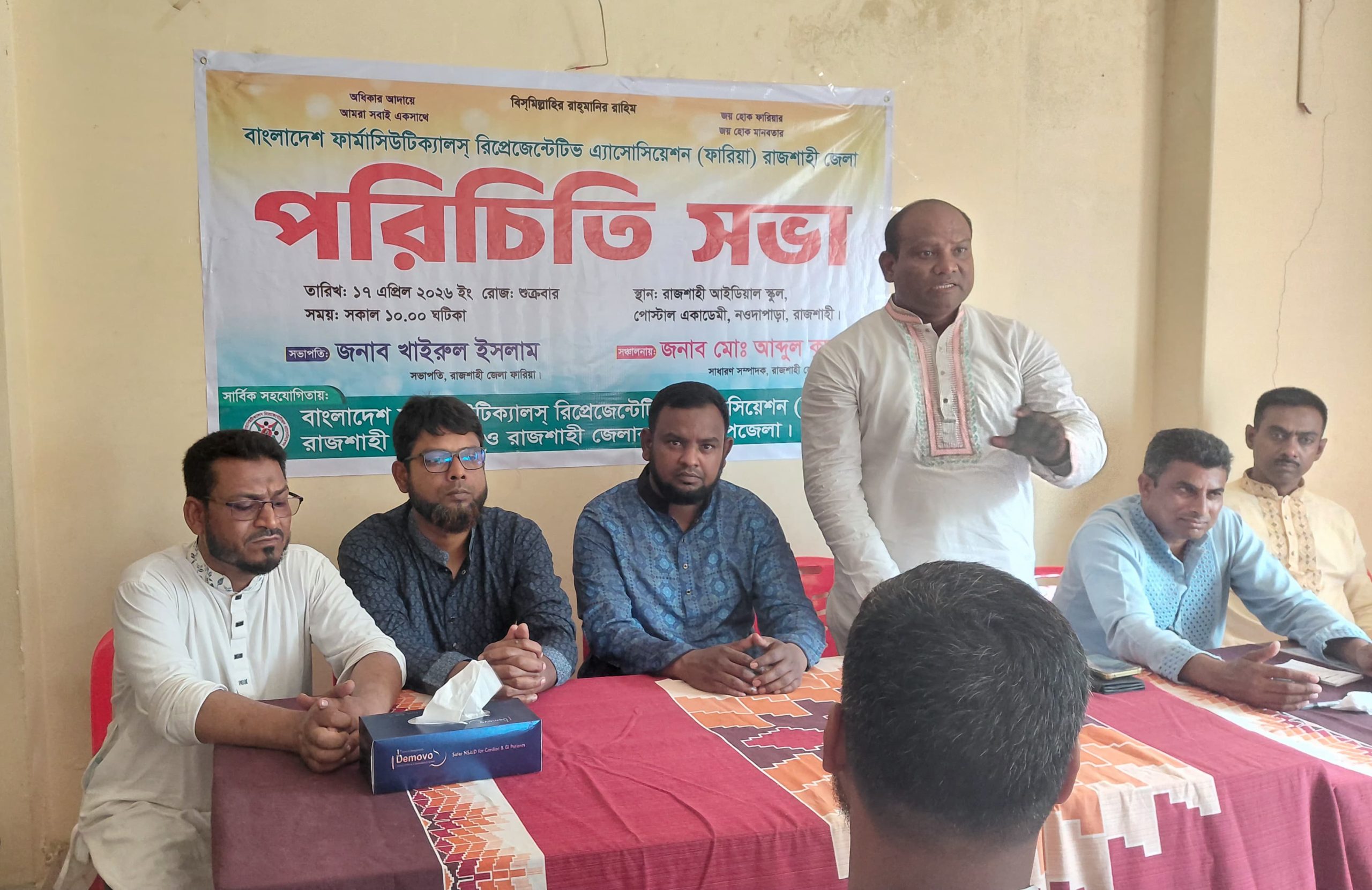 বাংলাদেশ ফার্মাসিউটিক্যালস রিপ্রেজেন্টেটিভ অ্যাসোসিয়েশন “ফারিয়া” রাজশাহী জেলা কমিটির পরিচিতি সভা অনুষ্ঠিত হয়েছে। শুক্রবার ( ১৭ এপ্রিল) সকাল ১১ টায় রাজশাহী আইডিয়াল স্কুল হলরুমে এ সভা অনুষ্ঠিত হয়।