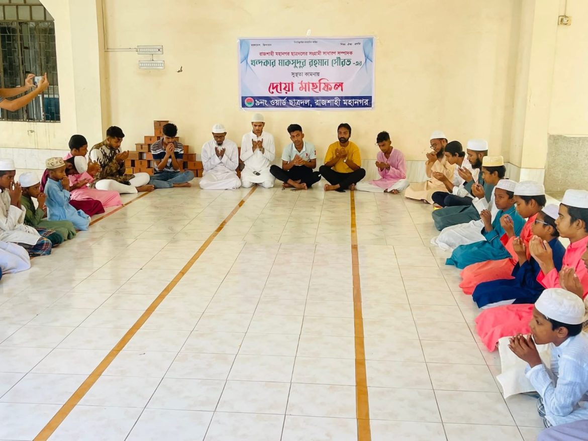 রাজশাহী মহানগর জাতীয়তাবাদী ছাত্রদলের সাধারণ সম্পাদক খন্দকার মাকসুদুর রহমান সৌরভের দ্রুত সুস্থতা কামনায় এক দোয়া মাহফিল অনুষ্ঠিত হয়েছে।
