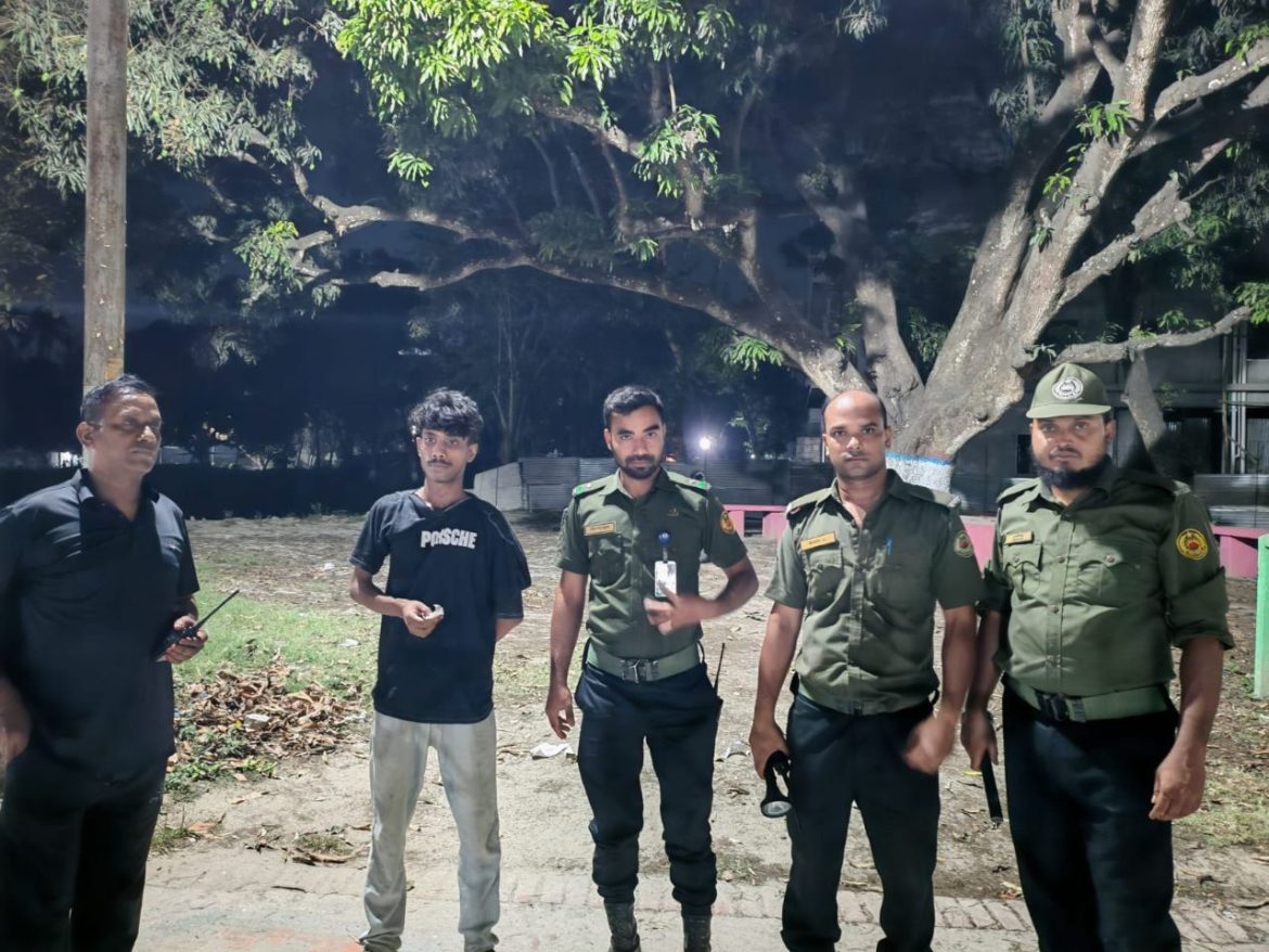 পরিস্থিতি নিয়ন্ত্রণে আনতে নিরাপত্তা শাখার প্রধান আবুল হাশেমের নেতৃত্বে আনসার প্লাটুন কমান্ডার শাহীন এবং অ্যাসিস্ট্যান্ট প্লাটুন কমান্ডার মিনহাজসহ অন্যান্য সদস্য দ্রুত ঘটনাস্থলে পৌঁছান। তাদের সমন্বিত প্রচেষ্টায় অভিযুক্ত যুবককে আটক করা হয়।