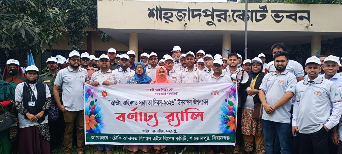 সিরাজগঞ্জের শাহজাদপুরে যথাযোগ্য মর্যাদা ও উৎসবমুখর পরিবেশে পালিত হয়েছে জাতীয় আইনগত সহায়তা দিবস-২০২৬। সরকারি আইনগত সহায়তা কার্যক্রম সম্পর্কে জনসচেতনতা বৃদ্ধি ও এর প্রসারের লক্ষ্যে প্রতি বছরের মতো এবারও দিনটি নানা আয়োজনের মধ্য দিয়ে উদযাপন করা হয়।